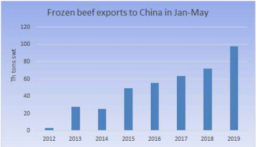 等待幾個月后,阿根廷終于正式可以對中國出口冷鮮和帶骨牛肉,目前阿根廷是中國市場第二大牛肉供應(yīng)國,阿根廷今年前四月共出口9.3萬噸,占中國牛肉總進(jìn)口量的21%,巴西占23%,烏拉圭20%。帶骨牛肉拿到中國證是非常積極的,這樣之前賣去香港的帶骨脖肉、帶骨前后腱等產(chǎn)品就可以直接出口中國,不過像帶骨肋排這樣在阿根廷國內(nèi)市場賣的非常好的產(chǎn)品應(yīng)該不會賣去中國。另外也需要觀察巴西對中國出口的暫停會持續(xù)多久,是否會對價(jià)格和需求產(chǎn)生影響。