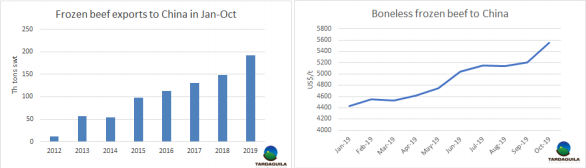 牛肉出口量的82.5%銷(xiāo)往中國(guó)