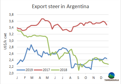 除了關于出口稅的許多未知因素外,還有一些人觀察到這種額外的稅率可能會引起該行業(yè)的自我凈化。Cofrigo經理表示,出口稅的增加可能會使所謂的屠宰經銷商的業(yè)務復雜化?!澳壳?,經銷商在利涅爾斯買牛(額外成本5%),在第三方工廠屠宰(250美元額外成本),在代宰工廠或另一個工廠加工(200美元額外成本),存儲在另一家工廠中(短途貨運要多付50美元),全部加上相應的增值稅,再加上沒有受過訓練的人員的低質量低效率的作業(yè)(我估計至少損耗5%),總計約900美元。這將使出口業(yè)務很難進行,如果他們無法收回增值稅,那就更糟糕。我認為,這種價格變化的過程,將使許多沒有工廠、也沒有固定結構、能源、勞動力等成本的局外人,以及許多沒有真正出口業(yè)務的“新”公司,重新思考自己的未來。出口商必須在每個階段都努力工作,保證盈利?!?span>