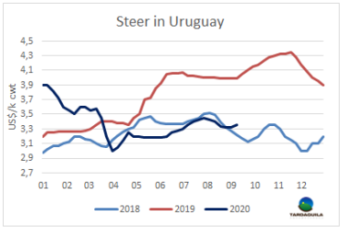 過去兩周,烏拉圭牛肉在美國市場的表現(xiàn)與預(yù)期脫軌。美國國內(nèi)牛肉產(chǎn)量旺盛,抑制了進(jìn)口業(yè)務(wù)的興趣,甚至連還價(jià)都沒有收到。此外,隨著氣溫的下降,美國餐飲的牛肉銷售開始放緩。