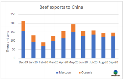 國(guó)慶節(jié)后,中國(guó)市場(chǎng)對(duì)牛肉的需求迅速回升
