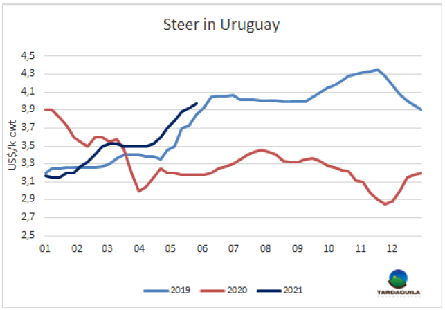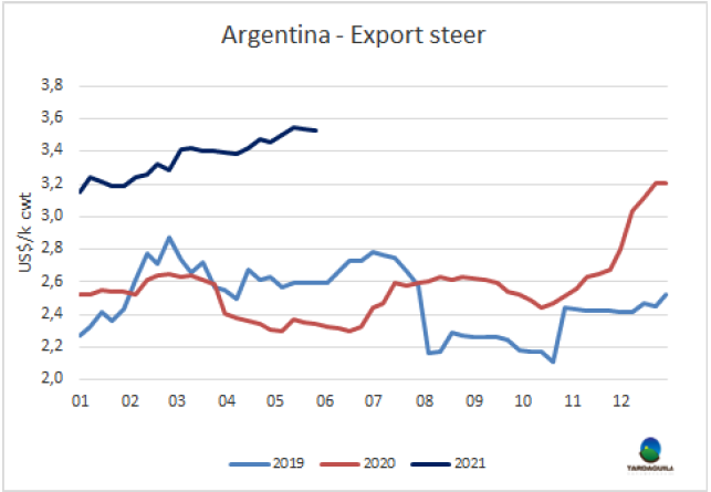 巴拉圭出口商期望智利宣布的重新開放活動能夠重新激活進(jìn)口市場。目前進(jìn)口商20部位全牛采購價不超過5400美元/噸,距出口商對新合同的報(bào)價低400美元/噸。