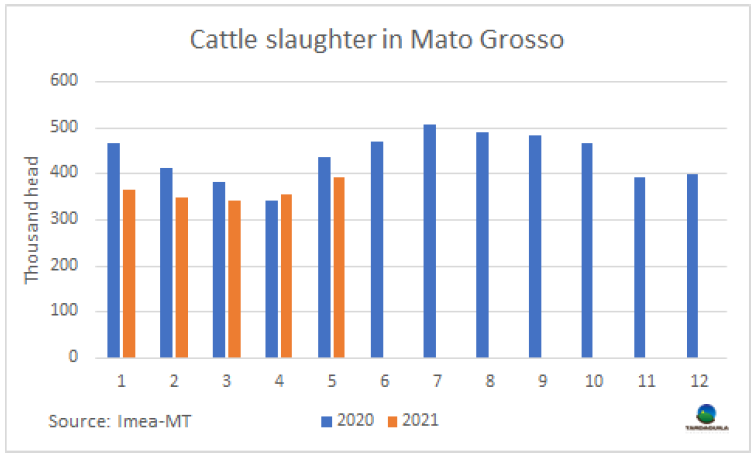 5月馬托格羅索州牛屠宰量下降了10%