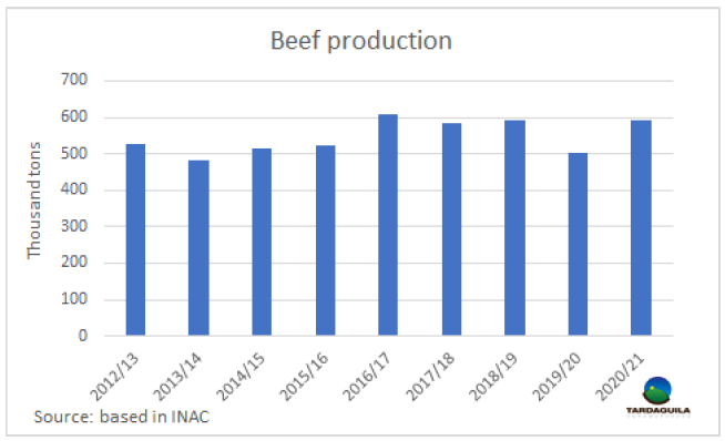 2020/21年度牛肉產(chǎn)量增長了18%