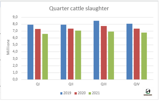 初步數(shù)據(jù)表明2021年第四季度牛屠宰量下降了8%