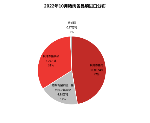 從進(jìn)口品項看,其他凍豬肉和其他凍豬雜碎進(jìn)口量之和占10月豬肉進(jìn)口量的81%。