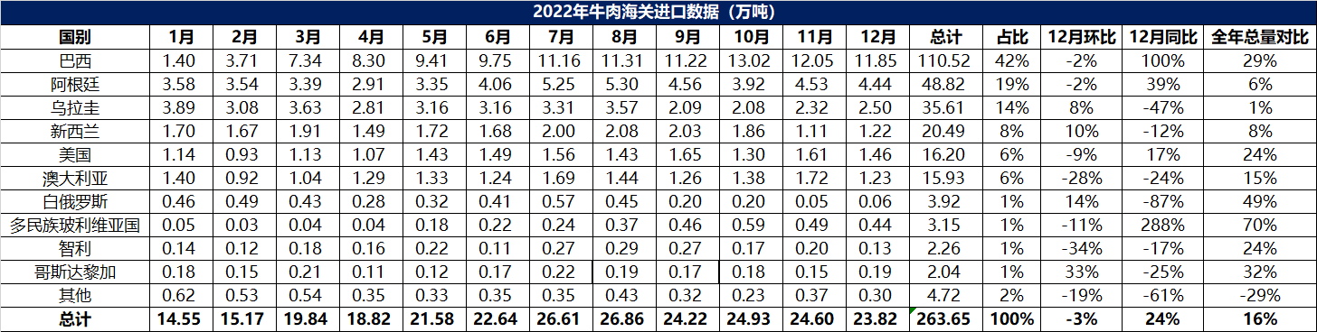 20221-12月冷凍牛肉進口數(shù)據(jù)