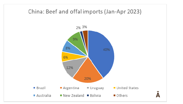 在2023年的前四個(gè)月里,玻利維亞增加了對(duì)中國(guó)的牛肉出口,這也使其成為繼南方共同市場(chǎng)三國(guó)(巴西、阿根廷和烏拉圭)、大洋洲國(guó)家(澳大利亞和新西蘭)之后的中國(guó)的第七大牛肉供應(yīng)國(guó)。