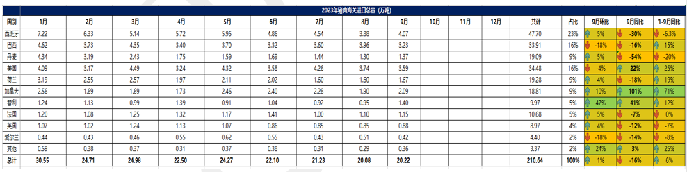 2023 年 9 月冷凍豬肉進(jìn)口概況