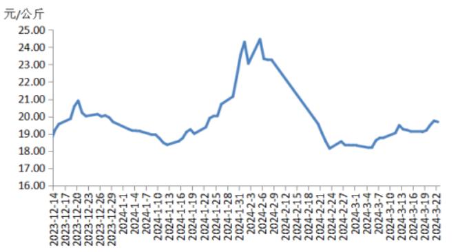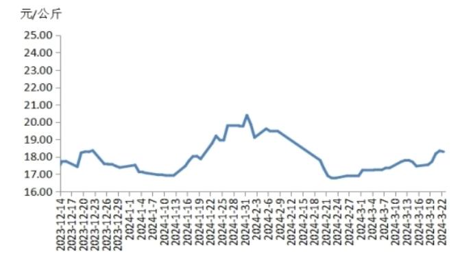 本周,廣東豬肉周均價(jià)為每公斤21.04元,環(huán)比上漲4.5%,同比上漲1.0%。周前期,本地區(qū)散養(yǎng)戶(hù)出欄生豬節(jié)奏平穩(wěn),外省調(diào)入廣東地區(qū)的豬源減少,致使本地區(qū)生豬總供應(yīng)偏緊,支撐生豬及豬肉價(jià)格有所上漲。周后期,隨著豬肉價(jià)格持續(xù)上漲,終端需求趨穩(wěn)、無(wú)明顯增量,豬肉價(jià)格漲后趨穩(wěn)??傮w看,本周廣東地區(qū)豬肉周均價(jià)環(huán)比上漲。