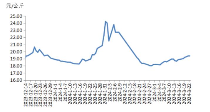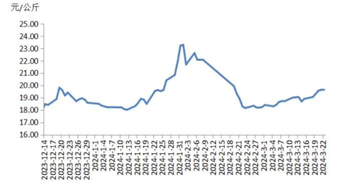 據(jù)農(nóng)業(yè)農(nóng)村部信息中心和山東卓創(chuàng)資訊股份有限公司聯(lián)合監(jiān)測(cè),2024年第12周(即2024年3月18日-3月22日,以下簡(jiǎn)稱(chēng)本周),16省(直轄市)瘦肉型白條豬肉出廠價(jià)格總指數(shù)的周平均值為每公斤19.55元,環(huán)比上漲2.0%,同比上漲1.3%,同比由跌轉(zhuǎn)漲。