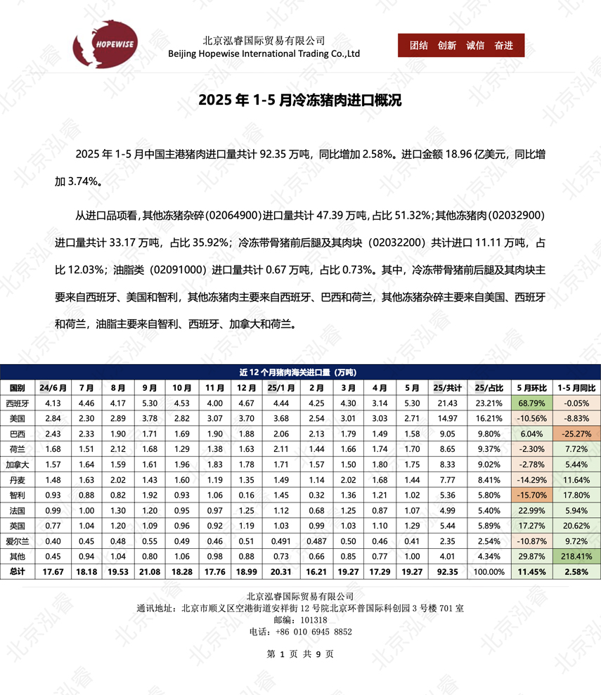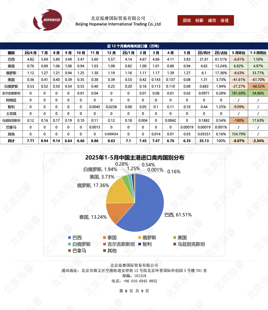 2025年1-5月冷凍豬牛禽肉海關(guān)進口數(shù)據(jù)