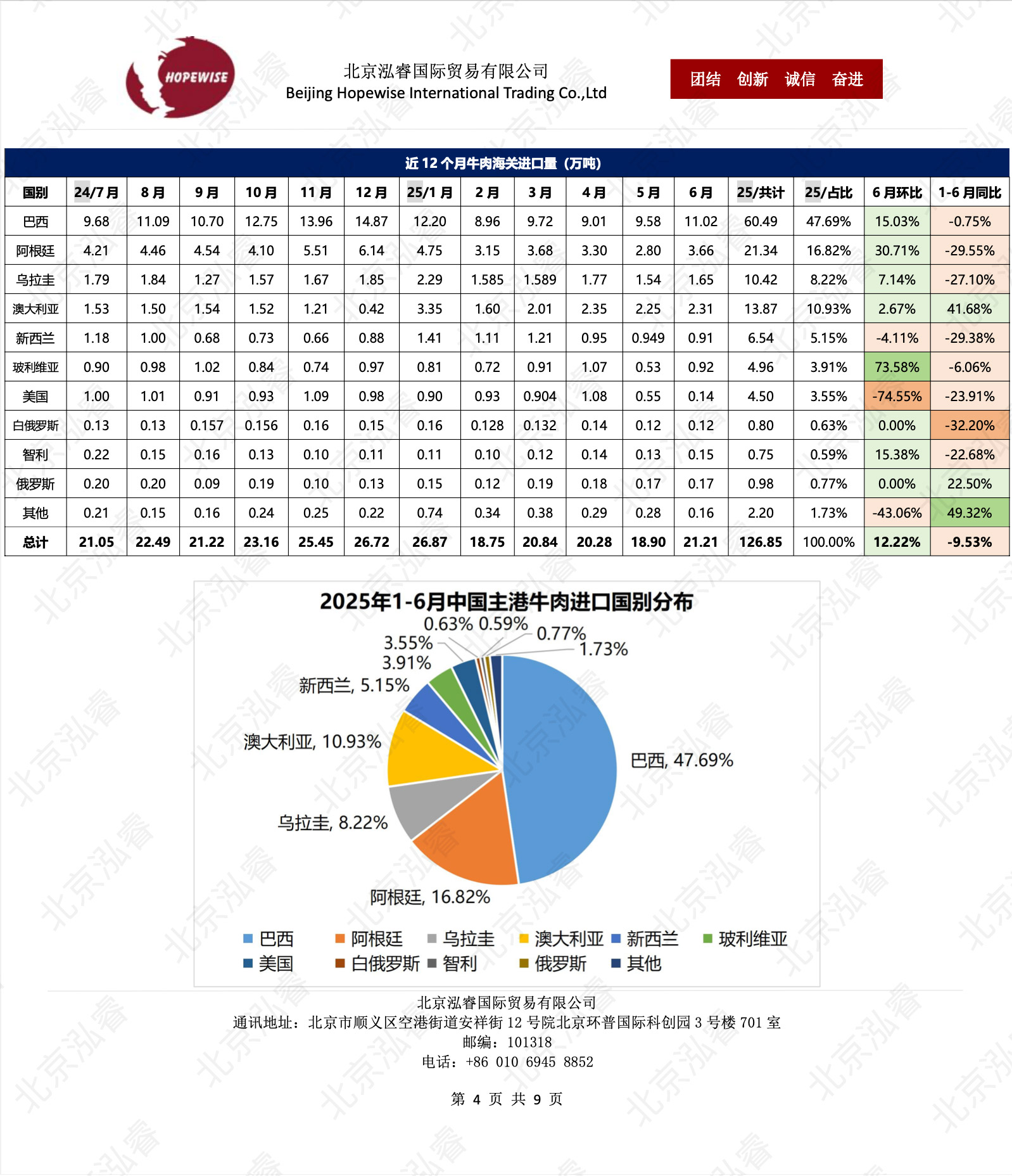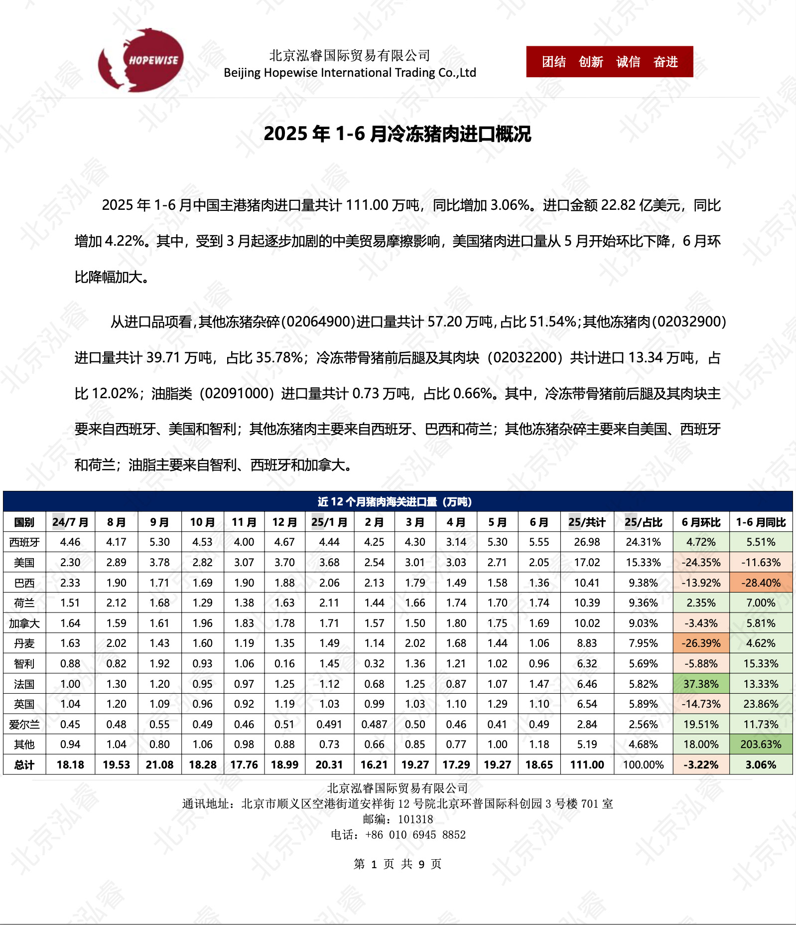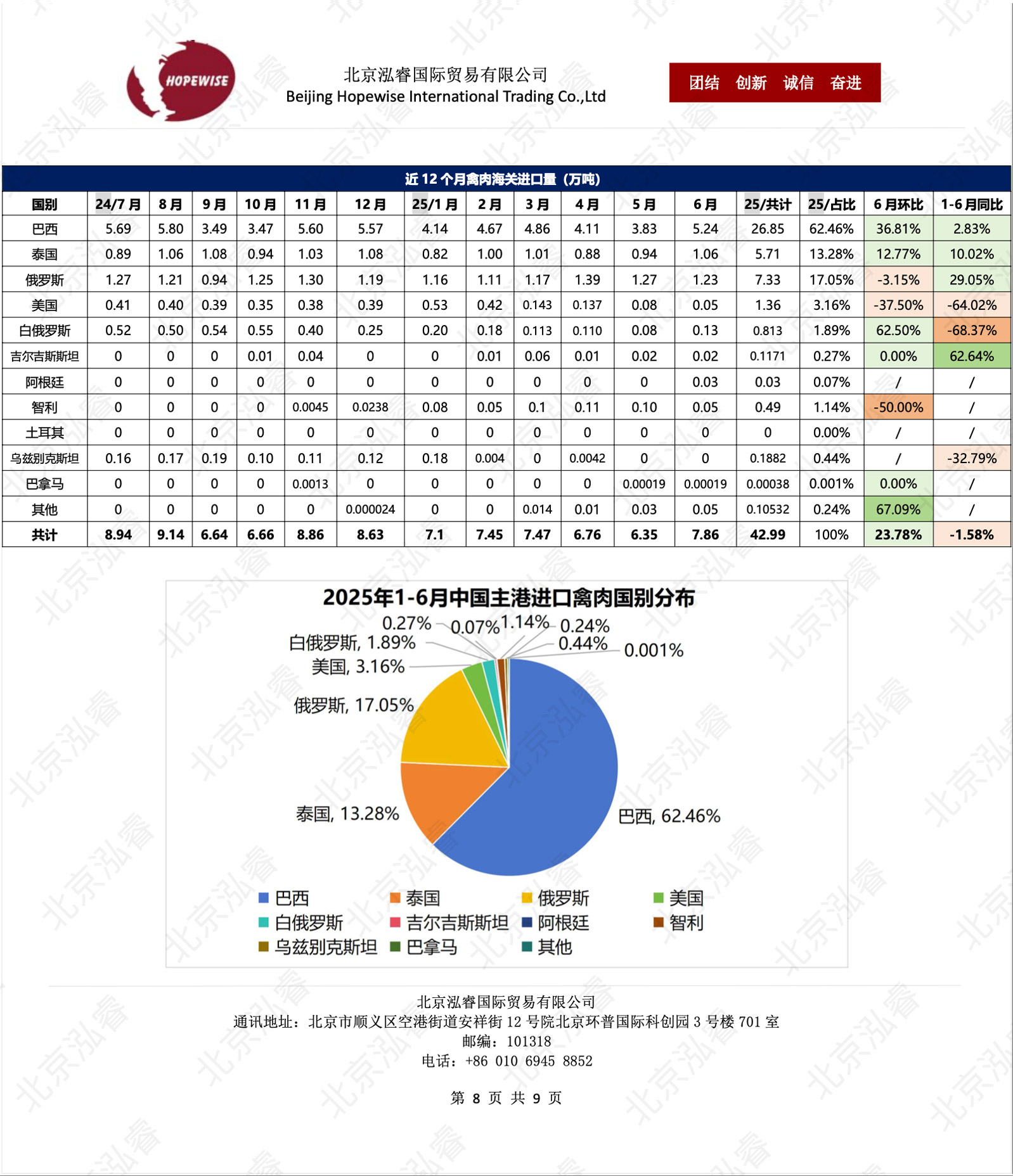 2025年1-6月冷凍豬牛禽肉海關進口數(shù)據(jù)