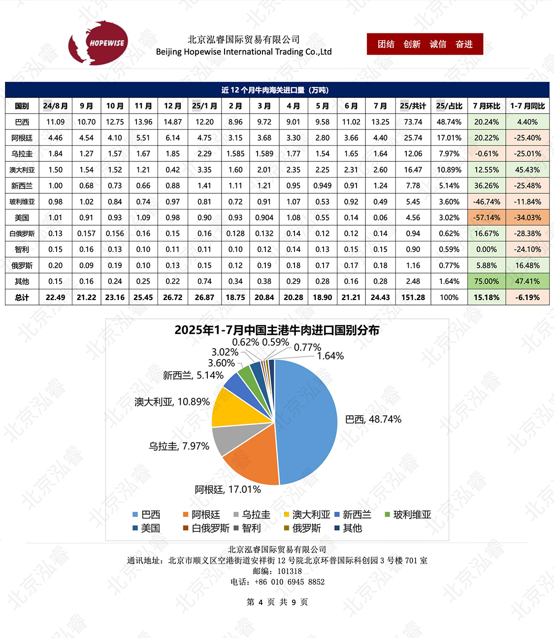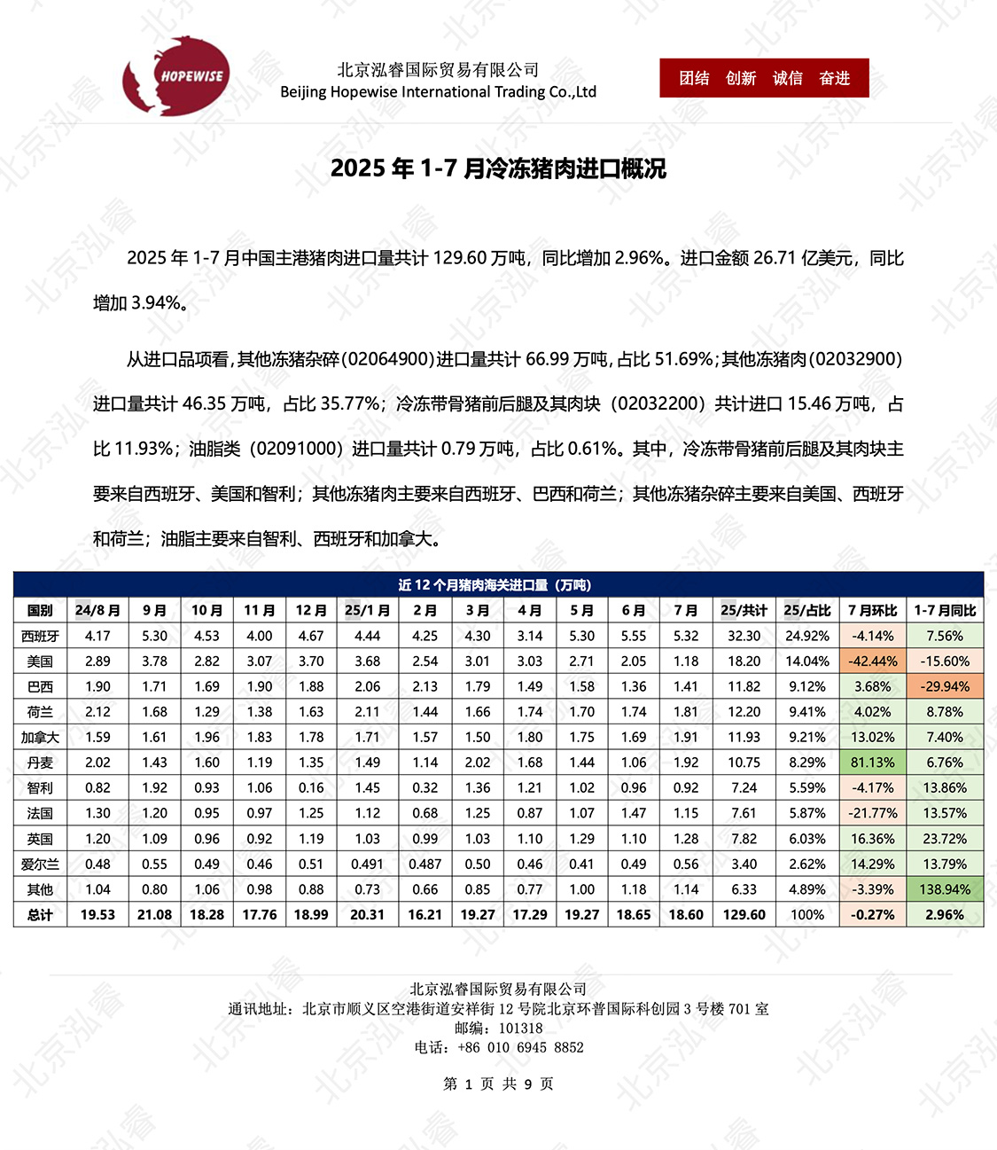 2025年1-7月冷凍豬牛禽肉海關(guān)進(jìn)口數(shù)據(jù)