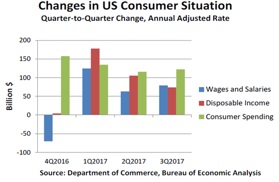 11月零售貿(mào)易和食品服務(wù)銷售總額整體同比上漲6.4%,是2017年年同比增幅最大的一個(gè)月。但這并不能說明食品行業(yè)的零售業(yè)績。 相較于通常所謂的消費(fèi)者行為驅(qū)動助力而言,消費(fèi)者的需求支出一直堅(jiān)如磐石。收入和工資增長,也包括2016年年底的可支配收入的乏力在2017年也回到了積極的軌道。這就為來年消費(fèi)者支出的持續(xù)增長提供了更多鼓勵(lì),也意味著零售銷售的可喜趨勢。隨著去年最后一個(gè)季度中的加速下跌趨勢,今年一整年食品零售總額下降了一個(gè)百分點(diǎn)。鑒于這種趨勢,牛肉需求的表現(xiàn)也是非常不錯(cuò)的。