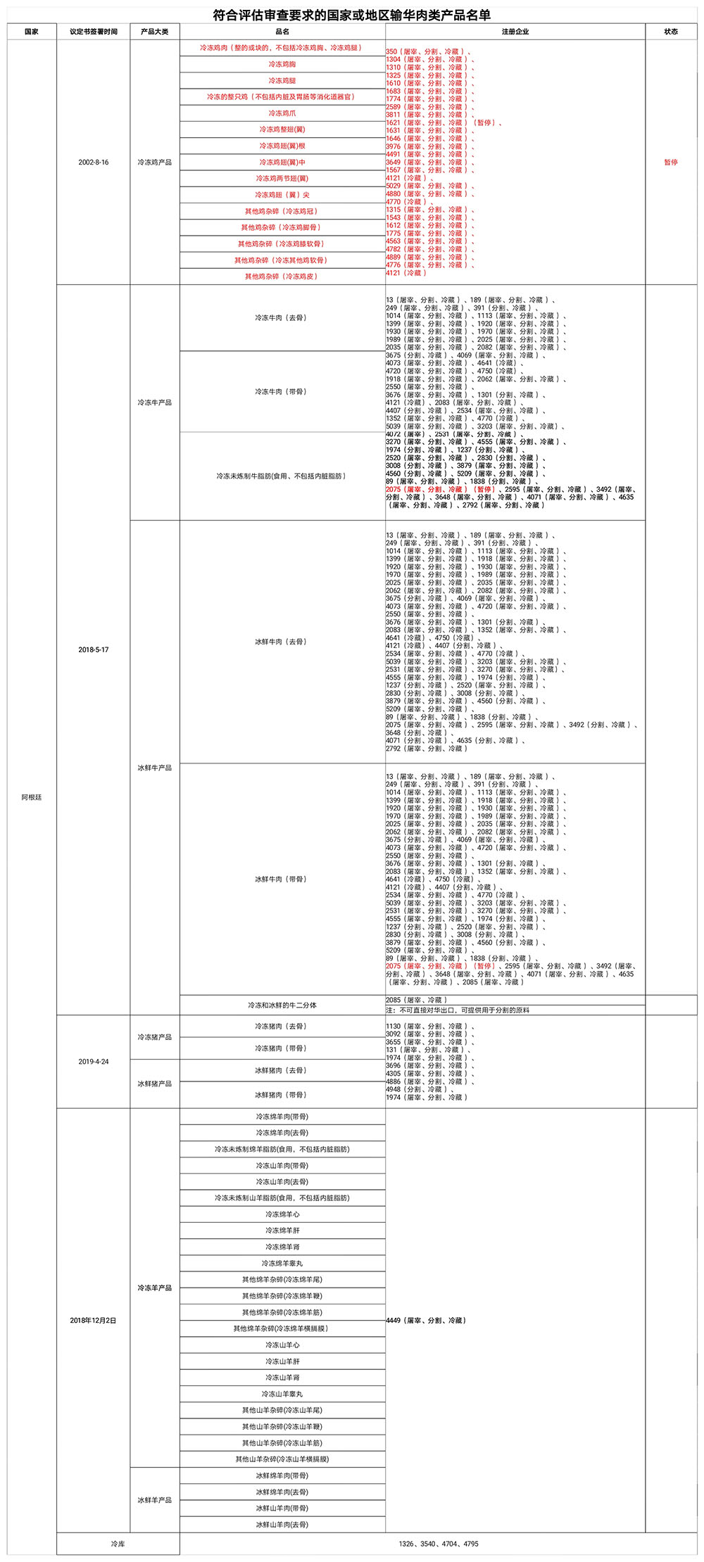 符合評(píng)估審查要求的國(guó)家或地區(qū)輸華肉類產(chǎn)品名單(2023年3月3日更新)