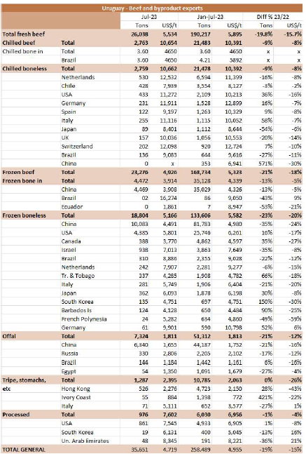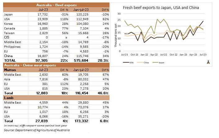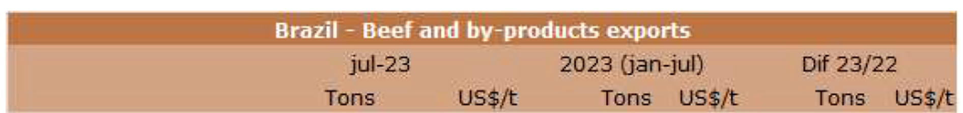 在WBR的最新報(bào)告中,公布了截至7月的月度出口表,其中新鮮牛肉的總出口存在錯(cuò)誤。下面是正確的圖表。