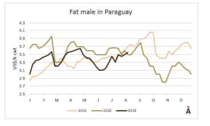 巴拉圭公牛屠宰價(jià)格為3.55美元,并將此價(jià)格定位為該地區(qū)價(jià)格自高到低排行第二的國(guó)家,但特種牛的價(jià)格下跌了10-15美分。