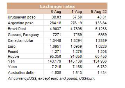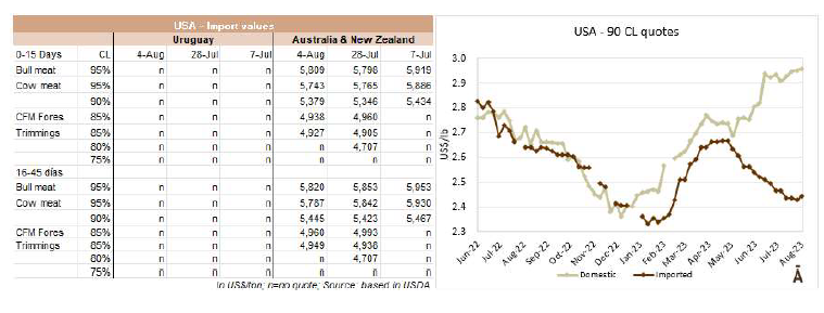美國(guó)進(jìn)口市場(chǎng)無法維持上周的動(dòng)態(tài),對(duì)烏拉圭產(chǎn)品的需求和價(jià)格似乎都有點(diǎn)疲軟。根據(jù)一位貿(mào)易商的說法,7天前90CL前部位肉達(dá)到的CFR4550美元/噸很難維持,進(jìn)口商打算每噸少付50至100美元。