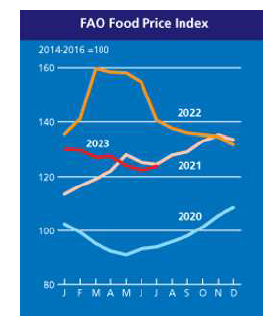 糧農(nóng)組織7約肉類價(jià)格指數(shù)平均為117.8點(diǎn),比6月份低0.4點(diǎn)(0.3%),比去年同月低6.3點(diǎn)(5.1%)。由于大洋洲的出口供應(yīng)增加,國(guó)際牛肉價(jià)格下跌,與此同時(shí),在庫存增加和國(guó)內(nèi)銷售疲軟的背景下,亞洲市場(chǎng)進(jìn)口需求疲軟。由于主要出口國(guó)的供應(yīng)增加,禽流感疫情在主要生產(chǎn)地區(qū)持續(xù)影響,禽肉價(jià)格也略有下降。由于大洋洲供應(yīng)充足,主要進(jìn)口商(特別是中國(guó)和西歐)的需求減少,羊肉價(jià)格連續(xù)第三個(gè)月下降。相比之下,美國(guó)和西歐的供應(yīng)持續(xù)緊張,加上季節(jié)性需求上升,導(dǎo)致豬肉價(jià)格連續(xù)第六個(gè)月上漲。