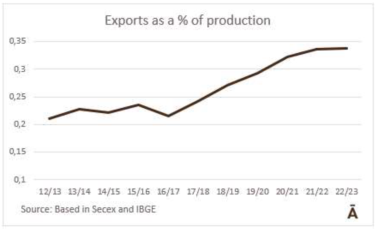 2022/23年牛肉出口比例停止增長(zhǎng)