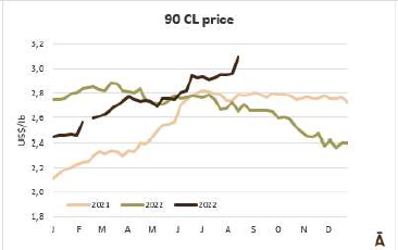 消息人士透露,在選舉之前,牛六分體的交易價(jià)格是CFR4400,牛23分體的價(jià)格為CFR4600。他總結(jié)道,這是需求低迷的一周。 另一方面,一位貿(mào)易商稱,過(guò)去一周智利帶骨牛四分體的價(jià)格一直徘徊在每噸CFR 4500美元至CFR 4600美元之間。