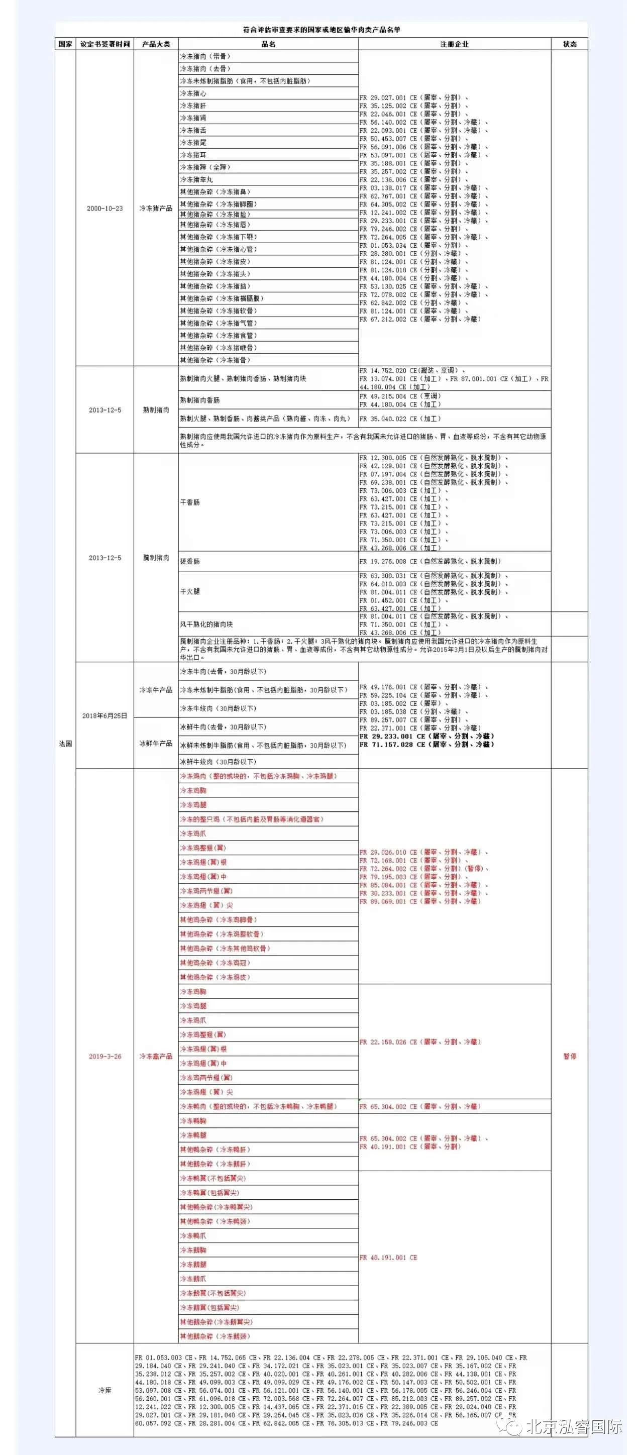 符合評(píng)估審查要求的國(guó)家或地區(qū)輸華肉類產(chǎn)品名單更新