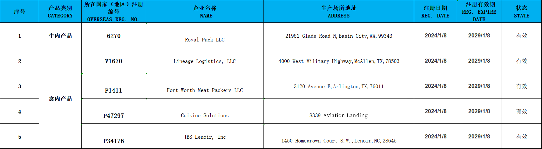 美國新增5家肉類工廠獲準(zhǔn)輸華!