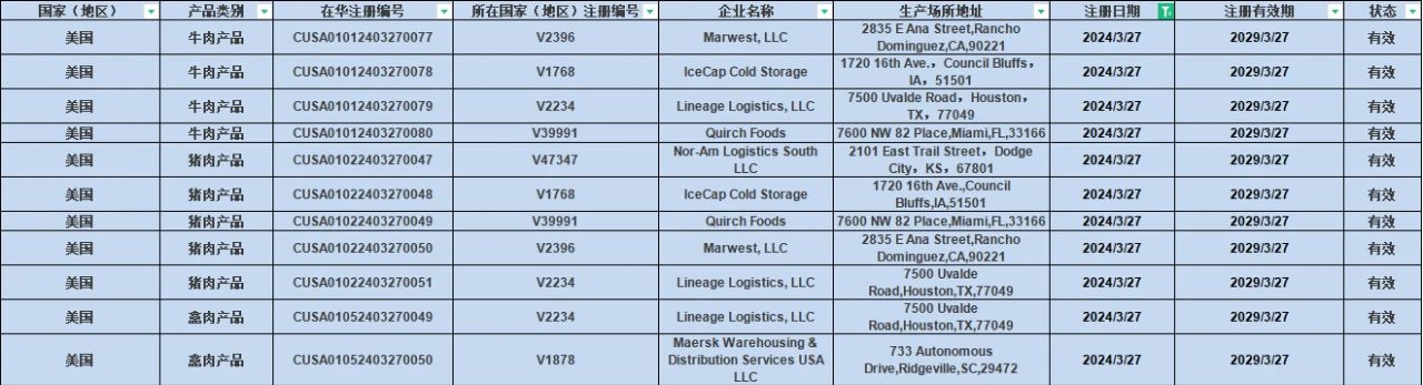 符合評估審查要求的國家或地區(qū)輸華肉類產(chǎn)品名單(2024年3月27日)