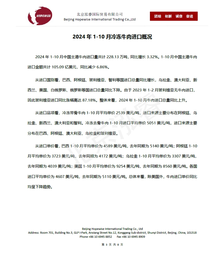 2024年1-10月冷凍豬牛禽肉海關(guān)進(jìn)口數(shù)據(jù)