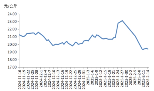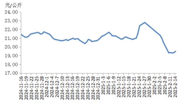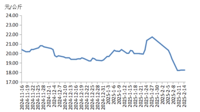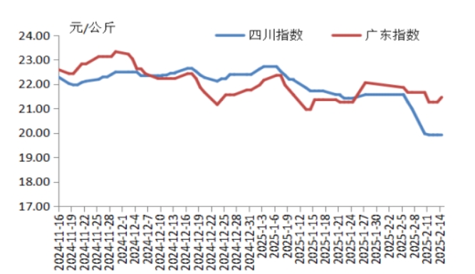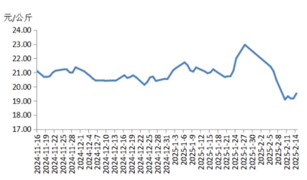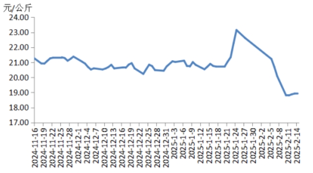 本周華中地區(qū)豬肉價格環(huán)比明顯下跌,周內(nèi)價格先跌后漲。前半周,規(guī)模養(yǎng)殖場的生豬出欄量增加,散養(yǎng)戶將春節(jié)節(jié)前壓欄豬源陸續(xù)釋放,使得生豬及豬肉供應充沛,而豬肉消費表現(xiàn)一般,元宵節(jié)提振力度較弱,致使屠宰企業(yè)訂單銷售速度不快,豬肉價格明顯下跌。后半周,各院校開學后食堂訂單小幅增多,經(jīng)銷商采購積極性增加,帶動豬肉價格有所反彈,幅度有限。總體看,本周華中地區(qū)豬肉周均價明顯低于上周。